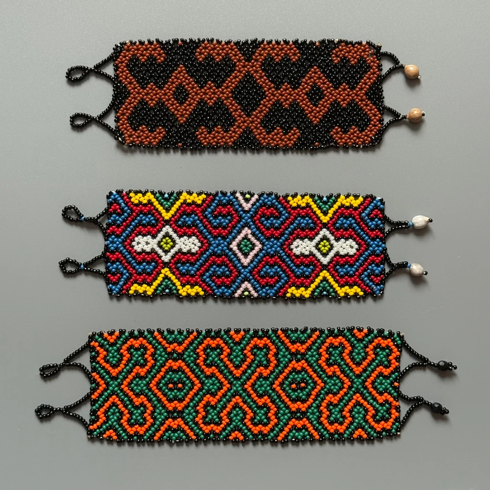 Украшения народа Шипибо создаются вручную и несут в себе силу древней традиции. В процессе плетения мастера передают в узоры энергию Сельвы, песни духов и силу Медицины, поэтому такие браслеты служат не только украшением, но и оберегом. Их задача — гармонизировать, защищать и поддерживать владельца в повседневной жизни.