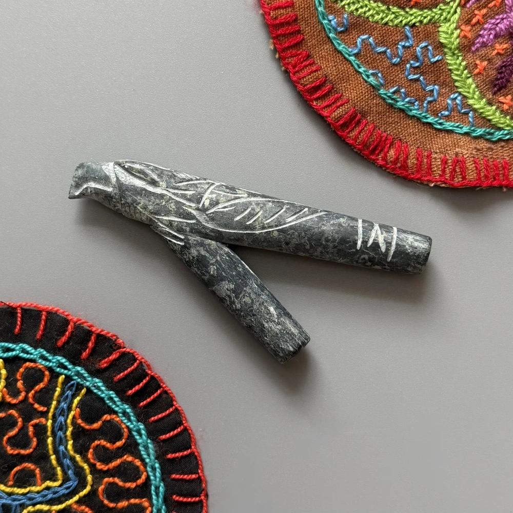 Змеевик — камень личной силы. В традиции такие изделия не дарят, чтобы не нарушить их настройку. С каждой практикой курипи настраивается на владельца, усиливая связь. Для очищения используйте дым палосанто, мапачо или других священных трав.