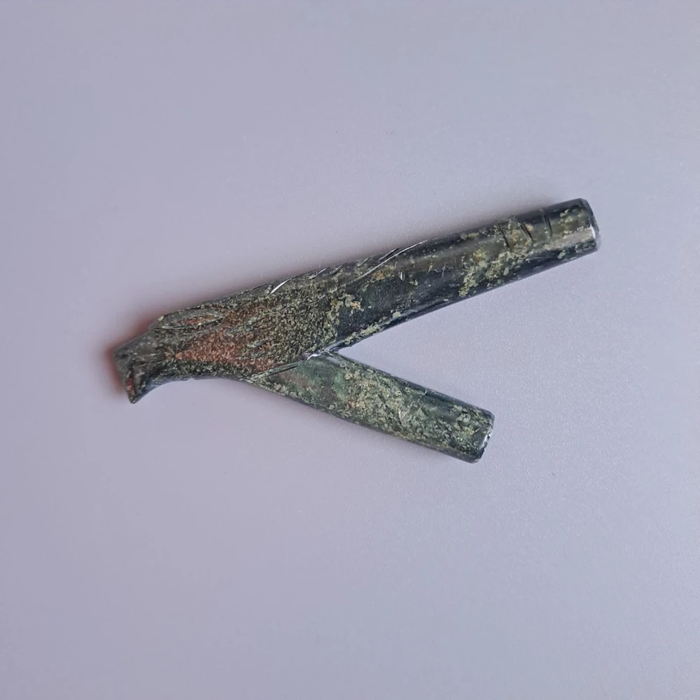 Курипи в форме головы орла, вырезанная из змеевика. Глянцевая поверхность камня.